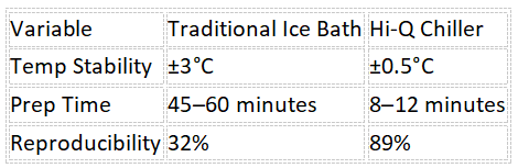Traditionelle isbade vs. Hi-Q-systemer:Traditionelle isbade skaber ujævne temperaturzoner (overflade: 0 ° C; bund: 8 ° C), hvilket fører til inkonsekvente resultater. HI-Qs virvelcirkulation sikrer homogen vandtemperatur, hvilket muliggør: